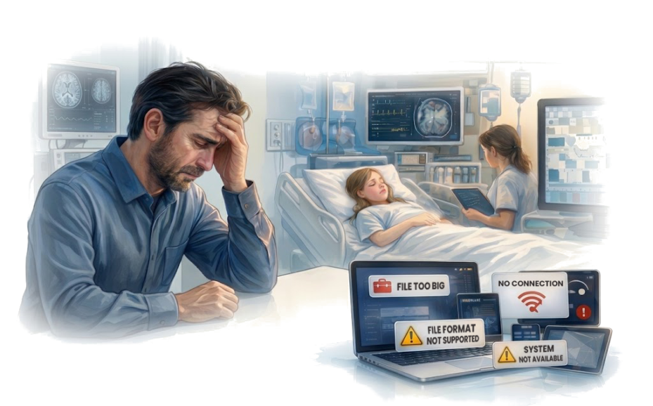 We began to recognize the same pattern in everyday life. When information truly becomes critical, the tools we rely on suddenly reveal their limitations. Large volumes of data cannot simply be sent via email. Common messaging platforms reach their limits as soon as data becomes more complex or simply too large.