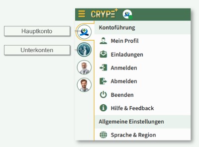 CRYPE unterstützt parallele Anmeldungen mehrerer Konten auf einem Gerät (z. B. Trennung von geschäftlichen und privaten Konten, Sekretariat, Callcenter).